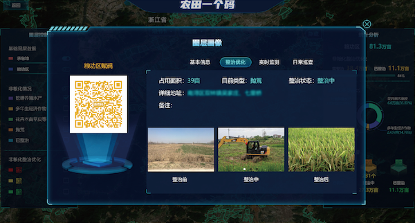 構建“一田一碼”,對農田地塊進行賦碼,以“農田碼”貫穿規(guī)劃選址、竣工驗收、項目管護、農田種植等全過程數據,構建“碼上監(jiān)管”"碼上服務”等業(yè)務場景,實現(xiàn)全周期串聯(lián),清晰掌提高標準農田建設全空間、全要素、全過程信息,做到“事前事中可預警”“全程信息可追溯”。