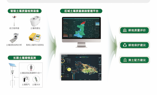 在土地平整、農田整治的基礎上,利用耕地質量監(jiān)測智能化裝備與土壤傳感器體系采集土壤理化相關指標、土壤含水量、區(qū)域農業(yè)氣象等數據,實現(xiàn)田間地情、肥情、環(huán)情、墑情的監(jiān)測分析。聯(lián)動應用區(qū)域土壤質量跟蹤管理平臺,為耕地監(jiān)管單位建立數字化管理體系,實現(xiàn)高標農田耕地質量的長效化、動態(tài)化、智能化監(jiān)測與管理。
