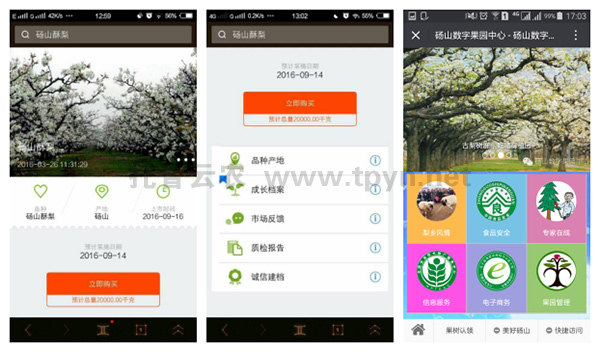 碭山數(shù)字果園電商平臺(tái)的建立,為消費(fèi)者帶來了便捷。既保障了產(chǎn)地的正宗,又方便消費(fèi)者選購,即使遠(yuǎn)在千里之外,消費(fèi)者通過網(wǎng)上訂購,也可在第一時(shí)間吃到當(dāng)季新鮮的碭山酥梨。