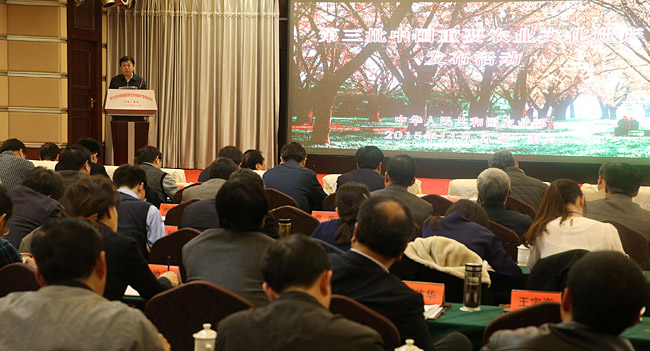 11月17日,農(nóng)業(yè)部在江蘇泰興舉辦第三批中國重要農(nóng)業(yè)文化遺產(chǎn)發(fā)布活動。農(nóng)業(yè)部總農(nóng)藝師孫中華出席發(fā)布活動并講話。
