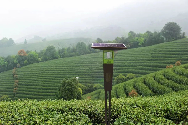 該項(xiàng)目中,托普云農(nóng)與中國工程院院士陳宗懋聯(lián)合推出的風(fēng)吸式茶園殺蟲燈在全國得到廣泛應(yīng)用。該燈通過特制的LED誘蟲光源,針對茶園主要害蟲精準(zhǔn)防控,大大減少了茶園化學(xué)農(nóng)藥的施用次數(shù)和施用量,保障茶葉品質(zhì)及生態(tài)環(huán)境安全,實(shí)現(xiàn)綠色高質(zhì)量發(fā)展。