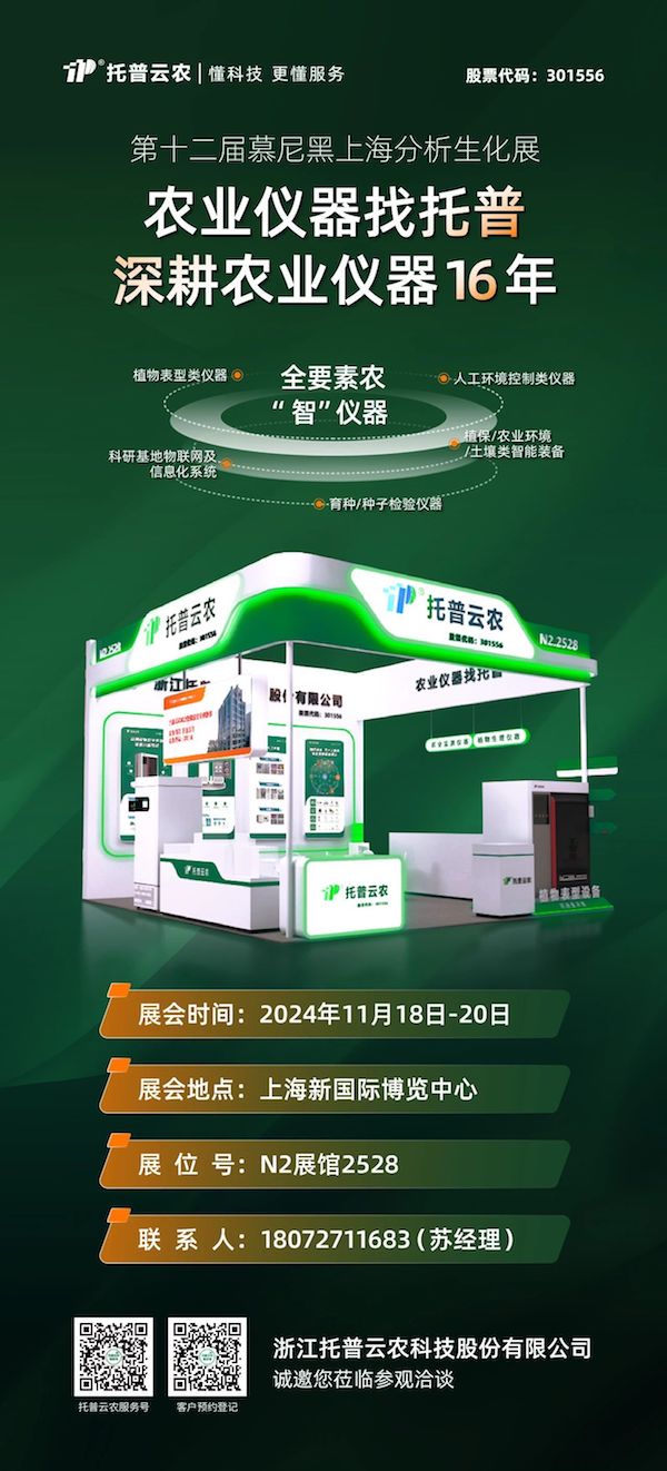 創(chuàng)新是推動(dòng)企業(yè)持續(xù)發(fā)展的核心動(dòng)力。作為國(guó)內(nèi)先行的智慧農(nóng)業(yè)綜合服務(wù)商,托普云農(nóng)持續(xù)攻關(guān)創(chuàng)新,不斷推陳出新。本次大會(huì),托普云農(nóng)還將攜高通量植物表型采集分析平臺(tái)、2024新升級(jí)智能培養(yǎng)箱系列產(chǎn)品、植物工廠等多款新品驚艷亮相,期待與各位行業(yè)同仁深入交流,共話科學(xué)發(fā)展前沿。