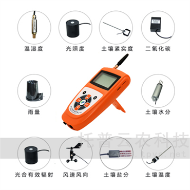 可記錄溫度,濕度,光照強度,CO2濃度,土壤溫度,土壤水分,光合有效輻射,土壤鹽分,風(fēng)向風(fēng)速,雨量,土壤pH11個參數(shù)。帶GPS定位功能,普通話語音功能,帶TF存儲卡也可主機本地存儲連接計算機導(dǎo)出數(shù)據(jù),多功能集于一體。