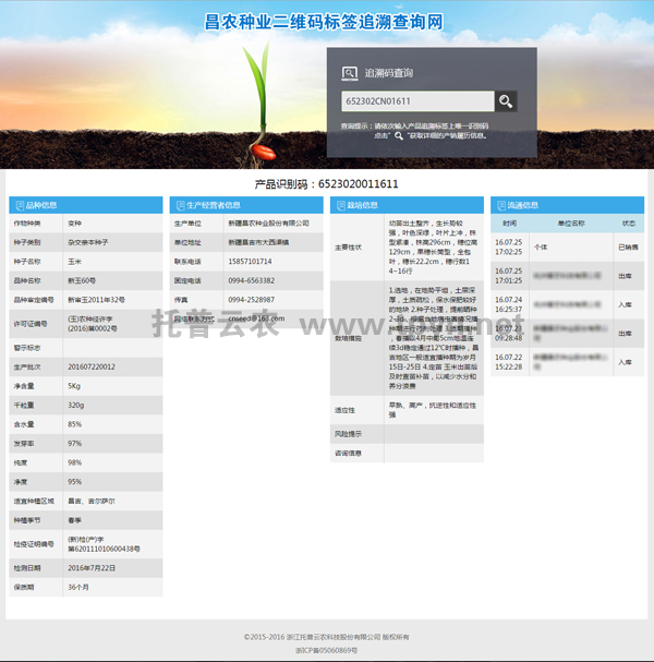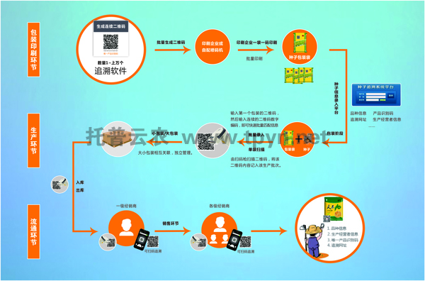 此環(huán)節(jié)中,所有生產(chǎn)及流通過程信息已同步到托普農(nóng)作物種子二維碼標簽追溯系統(tǒng)。消費者、執(zhí)法者、經(jīng)營者均可通過手機掃描二維碼得知種子生產(chǎn)流通過程。